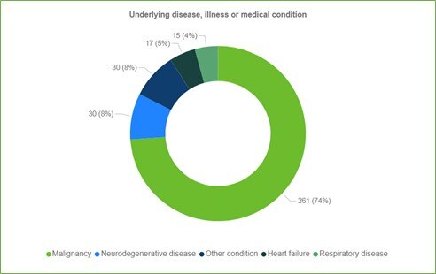 - 14 (8%) people were assessed as ineligible for voluntary assisted dying at the first or consulting assessment