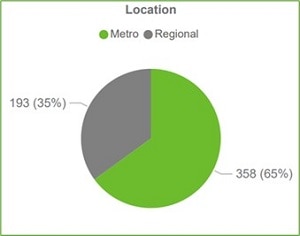 Of those who have undertaken the training, 60 (72%) are located in metropolitan Adelaide and 23 (28%) are located in regional South Australia closely reflecting the distribution of the South Australian population.