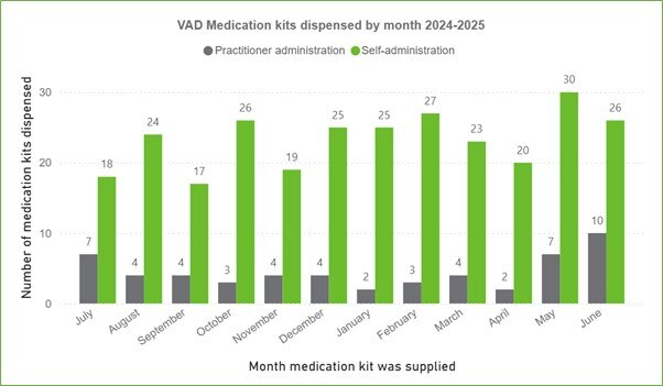 Between 1 July 2024 to 30 June 2025, the SAVAD-PS completed 334 visits across South Australia to supply the voluntary assisted dying substance.
