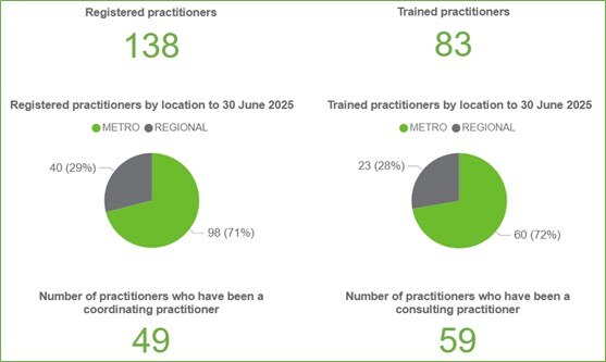 - 59 of the 83 trained medical practitioners accepted a referral from a coordinating medical practitioner to be a consulting medical practitioner